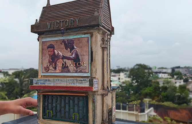 Inspired by the heritage Victory Talkies located at East Street, Pune. This miniature art took me about 7 months to complete. The movie poster on the facade was done back in 2002 in Microsoft Paint.