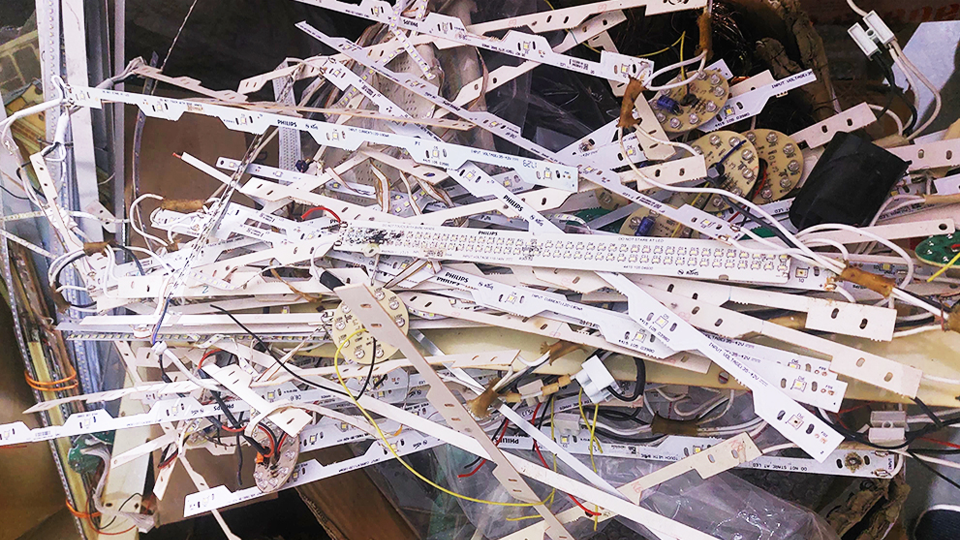Broken LED panels and keyboard PCBs eventually turned out to be the key ingredients for the portrait.