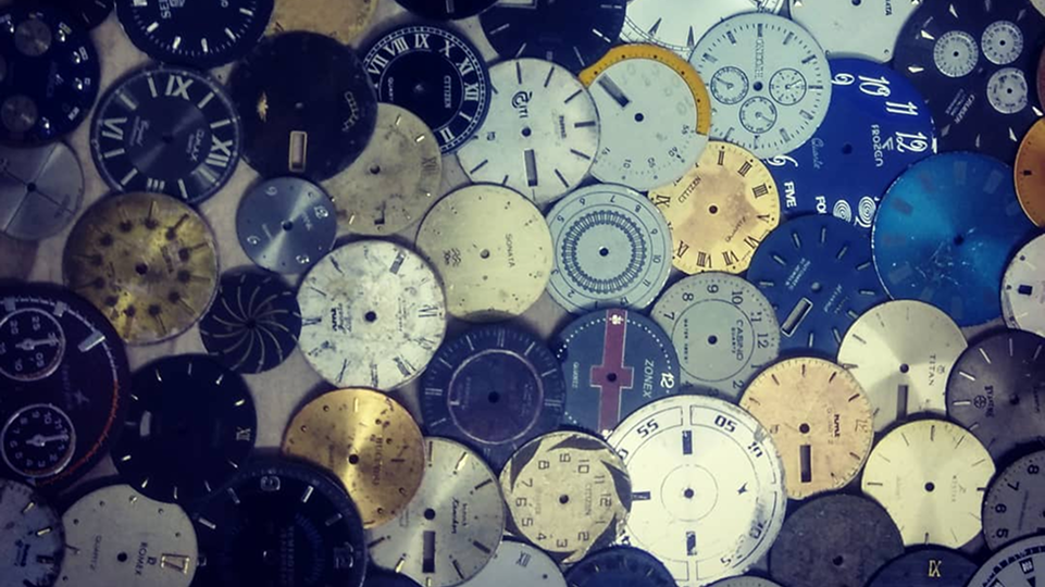 Bunch of old wrist watch dials, where were used in the making of Buddha