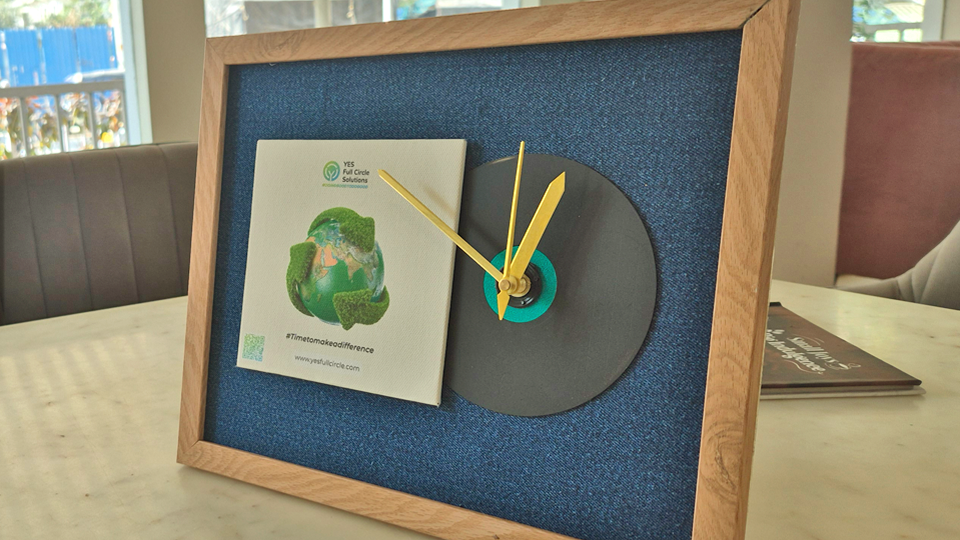 Had a lovely opportunity to create these exclusive timepiece / mementos for YES FULL CIRCLE . This time trying a different combination of obsolete materials to create a theme based mementos. Pairing discarded denim with up cycled CDs was totally unplanned experiment, but worth a shot. The sleek wooden frame is derived from furniture waste rendering a nostalgic appeal of vintage record.